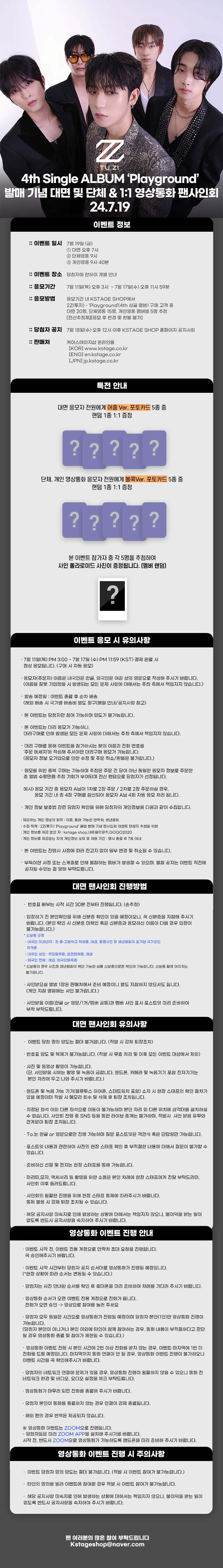 HOME > EVENT > 팬사인회 > [예판/개인영통] 7/19 2Z(투지) - 싱글 4집 [Playground]